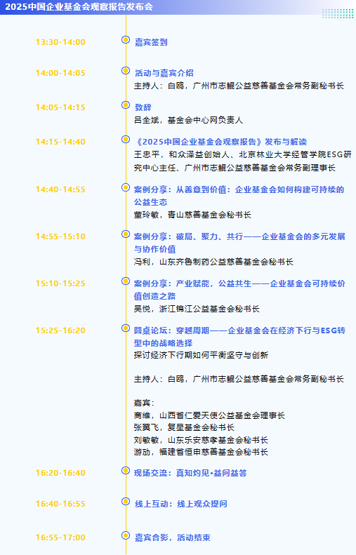 如何准确把握自身现状,有效应对挑战,科学规划未来,已成为众多企业基金会亟待探索的核心议题。为深度回应年会主题,并为企业基金会提供精准的战略导航,作为中国基金会发展论坛2025年会的重要组成部分,“洞察未来,共筑企业基金力量——2025中国企业基金会观察报告发布会”平行论坛将于11月22日举办。
